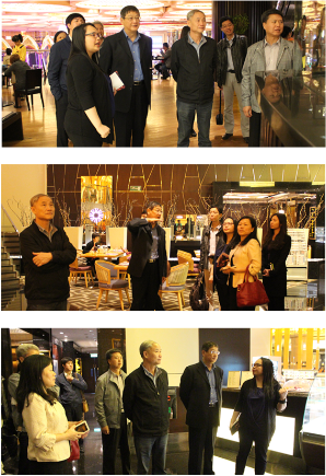 为了让学院方更加深入了解基地运营和管理情况,交流会后谢总监等领着李河川书记一行参观了新葡京酒店的各经营部门,详细地介绍了各部门的特色及运作情况,在不同部门的参观过程中学院领导给在岗位的同学带去诚挚的问候。
