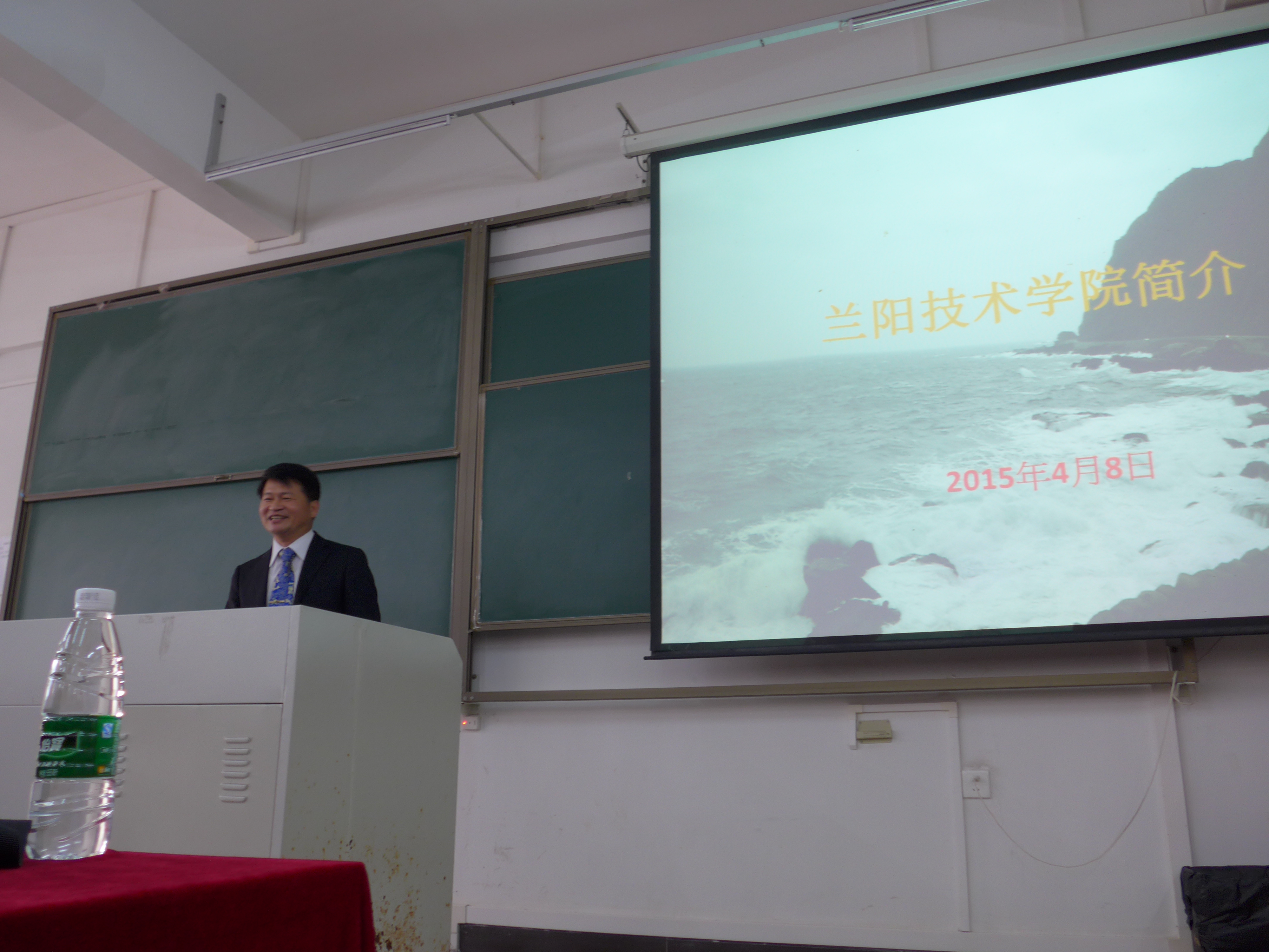 4月8日下午,台湾兰阳技术学院到我院清远校区举行交流宣讲会。台湾兰阳技术学院的刘建良副校长、技术合作处连元宏处长、国际交流中心潘彦豪主任应邀到场,南华工商学院招生办杨盛华副主任、旅游管理系谭金凤副主任、烹饪工艺与营养教研室主任张树清、酒店管理专业教研室主任陈丽芳、旅游管理专业教研室老师郭伟欣、辅导员老师马佩佩、黄隽随同出席。旅游管理系2013、2014级近300名同学参与此次宣讲。