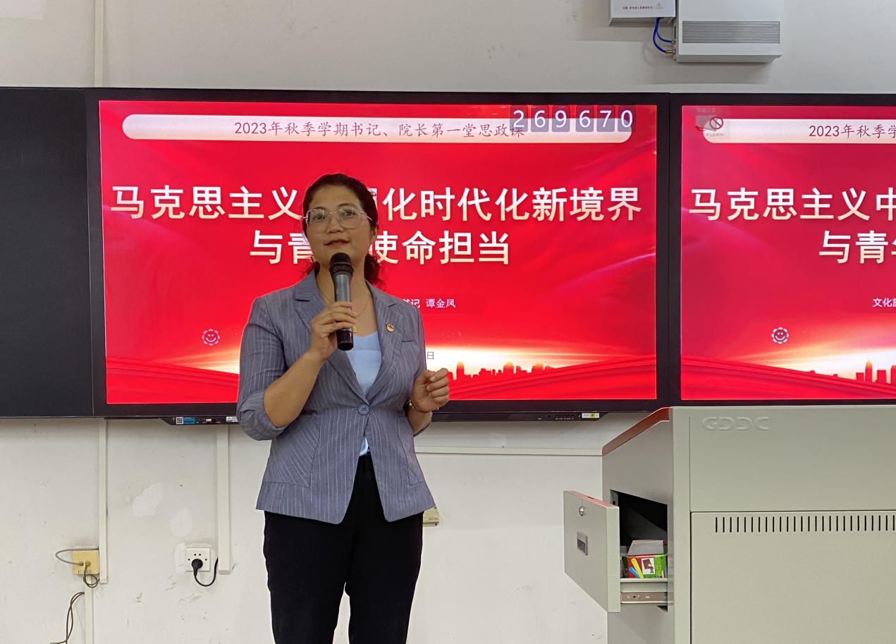 文化旅游学院党支部书记、副院长谭金凤讲授2023年秋季学期第一堂思政课