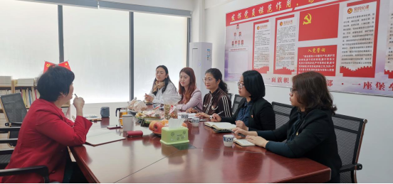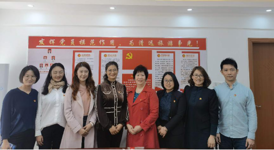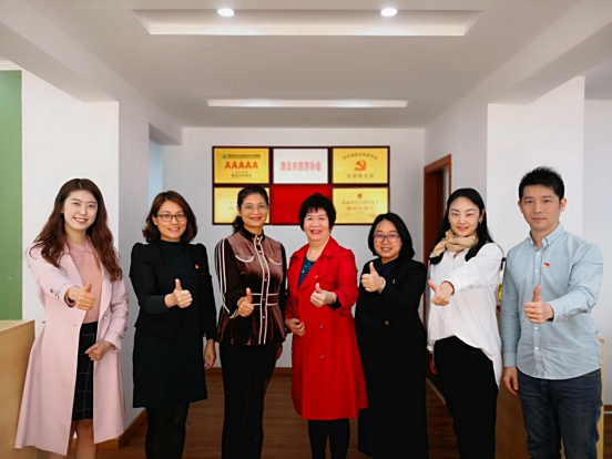 图二 双方党员及老师在清远市旅游协会党支部合影(右四为清远市旅游行业党委专职副书记、清远市旅游协会秘书长张秀莲,右一为清远市旅游协会秘书长党支部书记、协会副秘书长陈峰,左一为清远市旅游协会秘书长党支部副书记兼组织委员黄俏婷)
