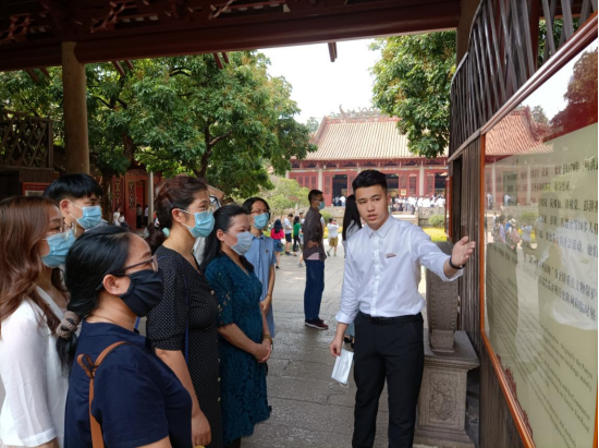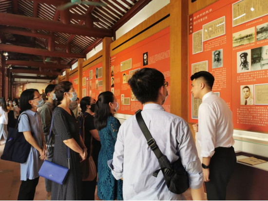 为认真落实习近平总书记在党史学习教育动员大会上的讲话精神,“用好党的红色资源,让干部群众切身感受艰辛历程、巨大变化、辉煌成就”,2021年4月23日下午,文化旅游学院党支部进行党史学习主题党日活动。在党支部书记胡家夏的带领下,党支部成员前往农民运动讲习所旧址纪念馆 (广州农讲所) 进行现场学习。我院旅游管理专业2019届优秀毕业生陈朋坤作为现场讲解员共同参与。
