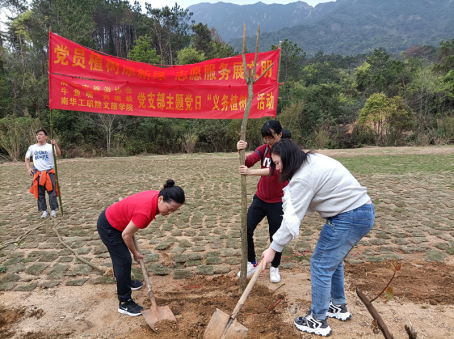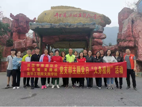 为进一步落实党的基层组织生活,扎实做好党员教育学习工作,切实践行“绿水青山就是金山银山”的发展理念,清远市旅游协会党支部、清远市牛鱼嘴生态旅游发展有限公司党支部、清远黄腾峡生态旅游开发有限公司党支部及9999js金沙老品牌文化旅游学院党支部,于2021年3月12日在清远市牛鱼嘴原始生态风景区开展“党员植树添新绿,志愿服务展文明”主题党日活动。文化旅游学院党支部书记胡家夏带领支部成员、学生入党积极分子参与。