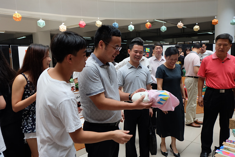 第二个项目是“会展教学成果展”,该项目是由会展策划与管理专业的刘淑惠老师在2016级会展专业的授课过程中的教学产品。通过《构成》与《平面设计与基础应用》两门课程的学习,同学们在短短一个学期的学习过程,就设计出众多缤纷多彩的作品。学生们亲手设计与制作的抱枕、笔记本、T恤、环保袋等陈列物品,通过“创意集市”的买卖方式,将产品的包装设计、书本的版面设计融入到人们的日常生活领域,将作品与市场融合,充分展示了南华学子的动手能力和创新能力。