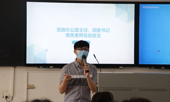 最后,学院党政办公室主任、团委书记黄隽老师总结发言。他强调,各位参与迎新的志愿者要清楚各自的工作任务,了解各项服务工作内容与要求,根据迎新志愿服务整体部署做好基本纪律规范与工作职责。所有志愿者在岗期间,需衣着得体,装扮整洁,规范佩戴工作证和穿戴志愿者服装;对待来校新生及家长礼貌热情,主动提供帮助;各部门之间团结友爱,互帮互助,共同迎接新生的到来。