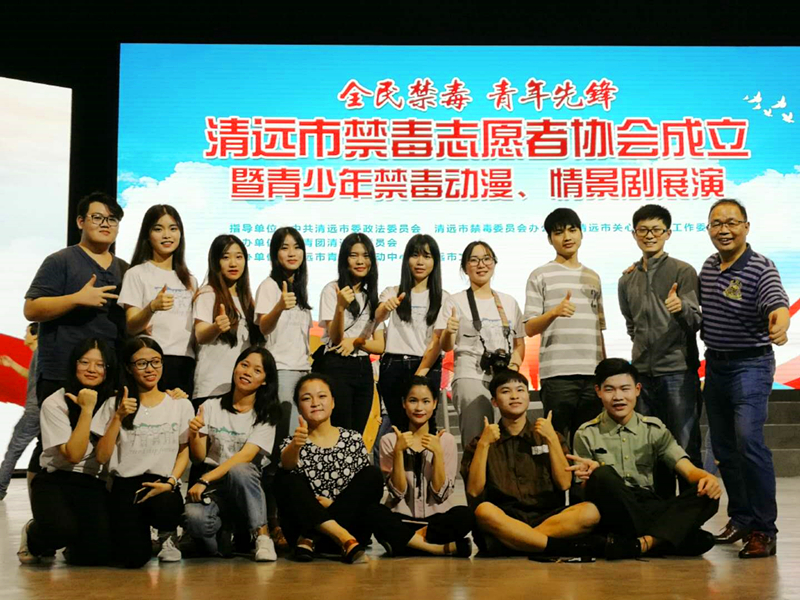 4月26日上午,由清远团市委、清远市禁毒办联合举办的“清远市禁毒志愿者协会成立暨青少年禁毒动漫、情景剧展演活动”在清远市文化馆小剧场隆重举行,校团委组织推荐旅游管理学院团委话剧团代表学生社团参加演出,话剧团圆满完成演出任务,并获得团市委领导的一致好评。正值“五四”青年节前夕,参与此次禁毒话剧展演活动既体现我校学子继承和发扬“五四”精神,同时也促进我校青年学生远离毒品,健康成长,积极参与全民禁毒宣传教育工作。据悉,除我校参与演出外,还有清远职业技术学院、清远市技师学院、清远市青少年活动中心尚音艺术、清远市职业技术学校、清远工贸职业技术学校等师生共同参与此次演出活动。
