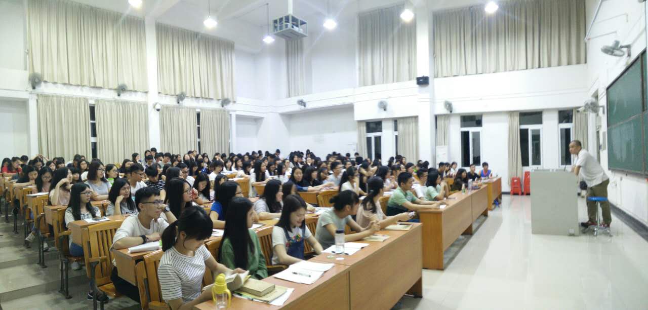 2016年5月10日晚上7点,资深媒体人、广东清新桃花湖国际民宿度假区创始人兼CEO刘荣先生到我院清远校区教学楼101课室举行了《职场生存秘诀、想象以及执行力》的讲座。该讲座由学院科研处、招就办、旅游管理系共同主办,是“博雅讲坛”第219期兼“旅游大讲坛”第三期。旅游管理系胡家夏主任、总务处王宇花副处长、旅游管理专业教研室主任梁滔滔老师、黄隽老师出席了讲座,活动由招就办李小宁老师主持,活动现场吸引了近200名学子到场聆听。
