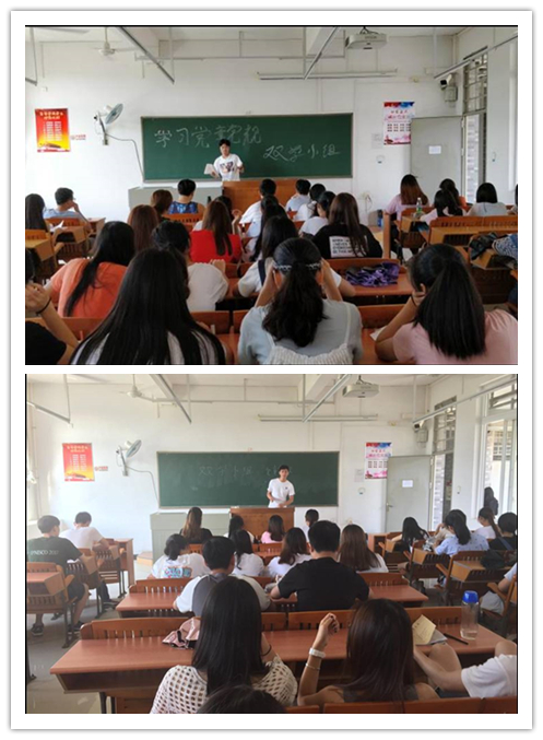 为了更好地学省党代会精神,迎党的十九大召开, 2017年9月11日-22日,旅游管理系15级、16级各班双学小组开展本学期第一次学习活动,以各班预备党员、发展对象为组长,带领双学小组成员学习党章党规、社会主义核心价值观、习近平总书记重要讲话精神等。学习形式以读党章、看讲话为主,交流学习心得、谈谈个人体会为辅。青年最富有朝气、最富有梦想,青年兴则国家兴,青年强则国家强。双学小组活动的顺利开展,有利于加强学生对党的认识,坚持学生正确的政治方向,提高学生的政治明锐性和分析解决问题能力,促进学生综合素质的培养。