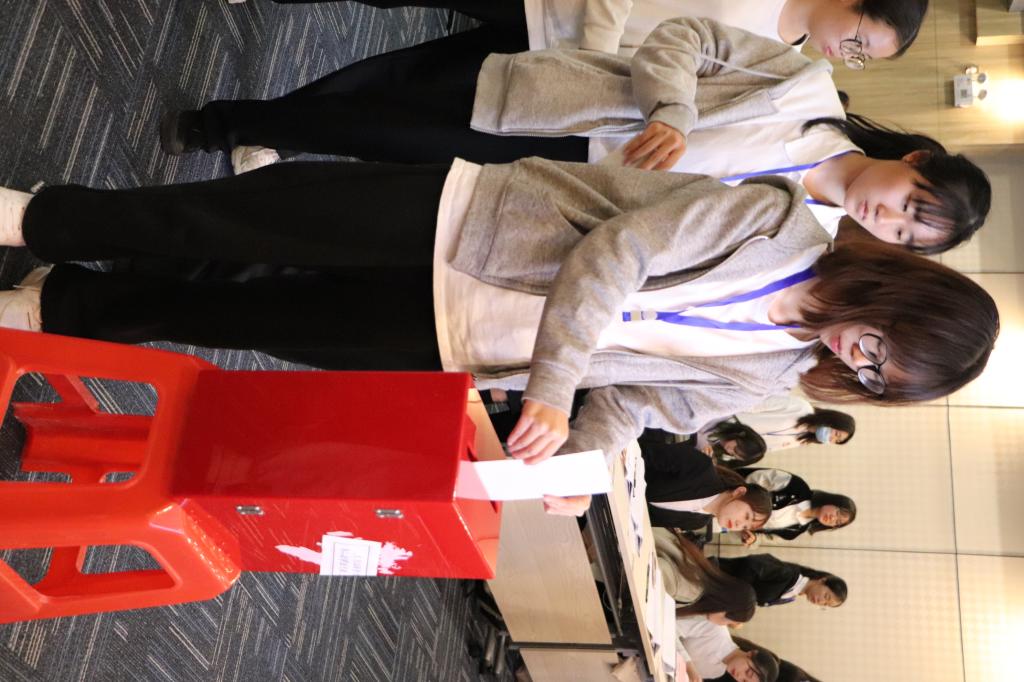 第三次全体会议审议通过了第二届学生会主席团候选人名单,各代表团参照会议材料中《会议须知》第八点要求,按大会指定的次序和方式进行投票,最后由票务组统计选票,由总监票人胡轩宇宣布选举计票结果。