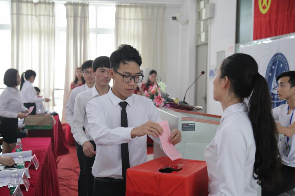 最后一个环节,总监票人黄隽老师宣布了投票结果。在共青团团歌的歌声中,大会圆满闭幕。