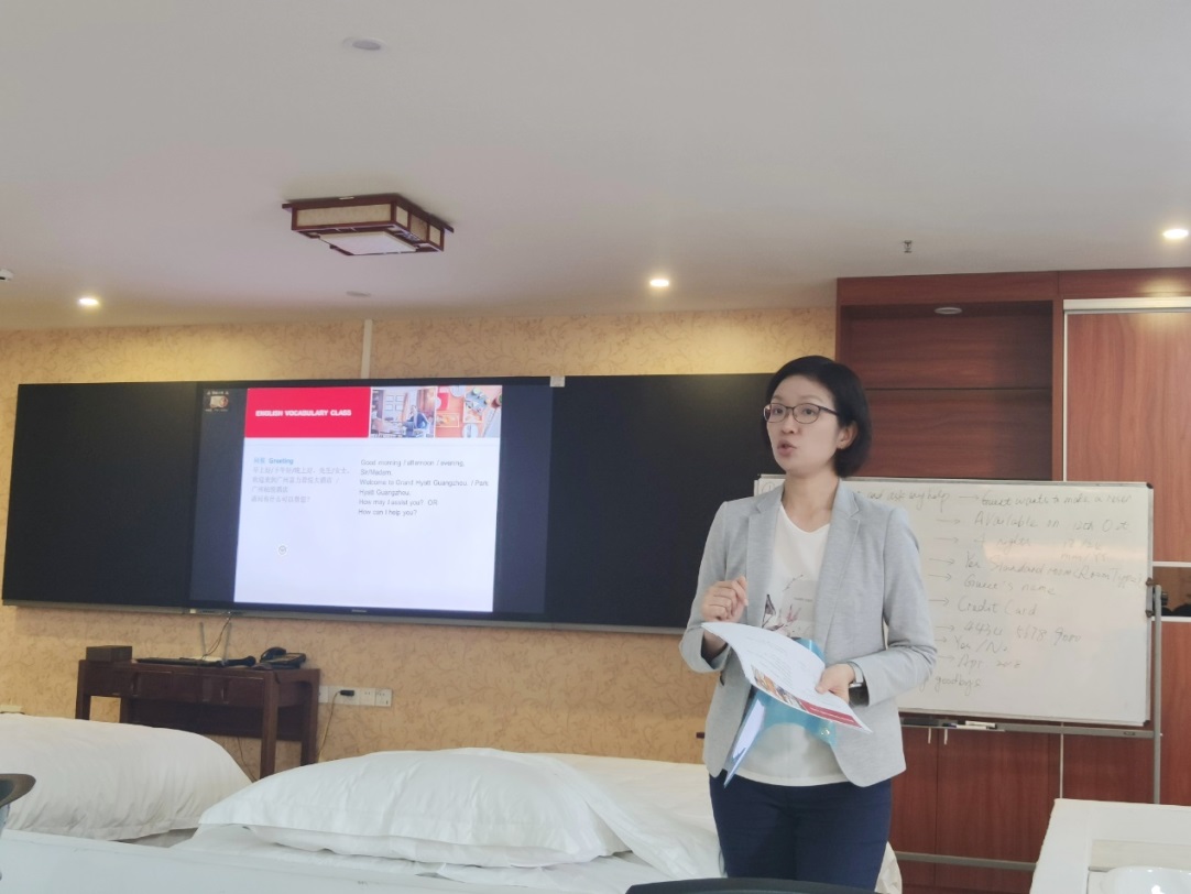 本次课程主题为“前厅部的运作”。上午课程伊始,导师陈炬冉通过小组讨论启发学徒思考,前厅部是什么?随后用实例生动介绍前厅部的构造和职能。为了加深学徒对前厅部的认识,两位导师让学徒通过角色扮演,模拟迎宾和前台预订场景,以实际操作考验他们的应变能力和沟通能力,课堂气氛十分活跃。