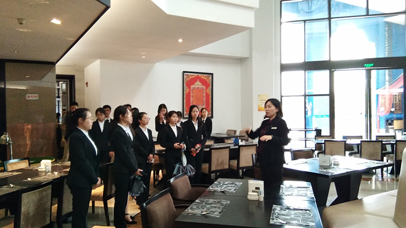 最后,酒店安排师生享用精美茶歇,并按专业将学生分成两支队伍,布置专门的酒店管理人员带领,对酒店的宴会厅、客房、餐厅等进行参观学习。通过酒店方的讲解,同学们表现出对酒店的浓厚兴趣与由衷赞叹,加深了对酒店文化特色及风格等的认识与了解,为日后的实习路径选择提供了方向,为成为高层次的酒店行业人才奠定了基础。