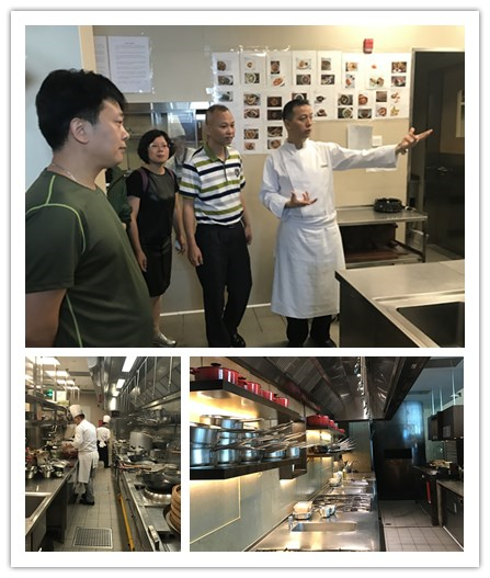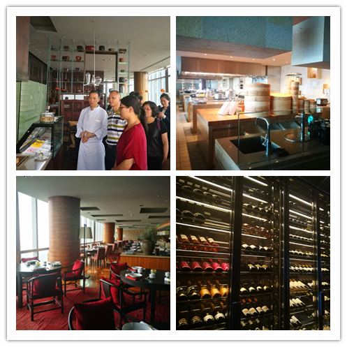 随后,在人力资源部经理朱艳君小姐的带领下,老师一行参观了酒店的前厅、客房、餐厅等多个部门。其中,柏悦酒店多个餐厅均采用开放式厨房,客人可以看到厨师们精心准备的一道道美食。整个酒店风格采用中国传统的元素,装饰上多处采用经典老宅木饰、瓷器,以及由著名设计师精心打造的“龙型”木质装饰等等。