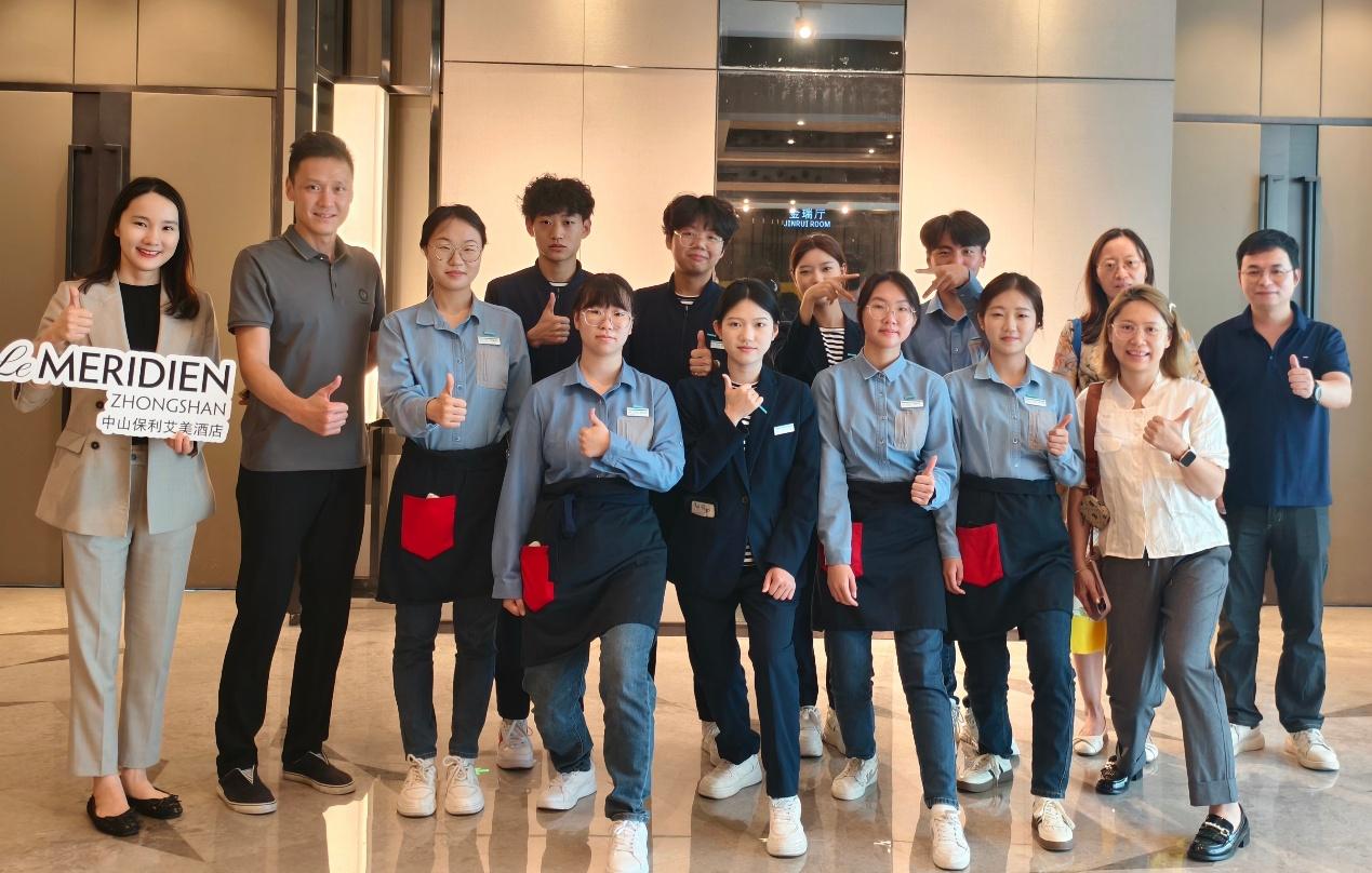 中山保利艾美酒店是万豪酒店集团旗下高端商务型酒店。校企双方围绕酒店行业的最新发展趋势、企业对人才的需求变化以及校企合作模式创新等议题展开了讨论。学校老师们与实习学生还开展座谈会,了解学生在岗学习及生活状况,耐心倾听并解答学生们提出的问题与疑虑。实习生们对实习单位总体反馈满意。