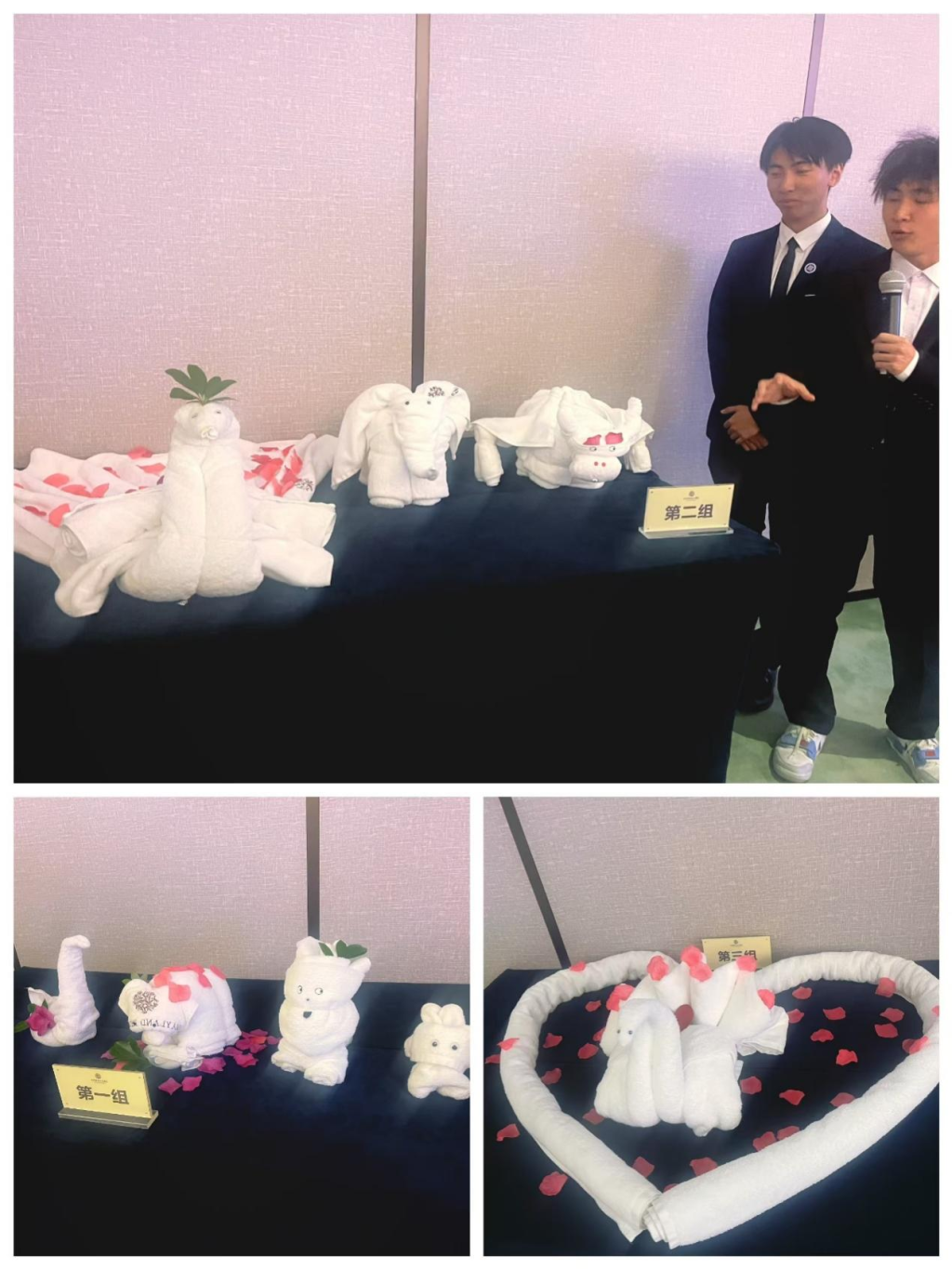 通过现场学习,同学们认知酒店各部门运营情况和各岗位工作职责,提升行业认知并激发对专业知识的学习热情。此外,酒店方还精心筹备了一场小型客房布草创意造型设计比赛,学生通过现场观摩学习,掌握相应方法与技巧,分组动手实操,最后完成小组比拼,体验劳动的创意与乐趣。随后,学子们再通过与酒店中高层管理人员面对面交流,加深对《劳动教育》的实践要求,强化学习“三种精神”,树立正确的劳动价值观。