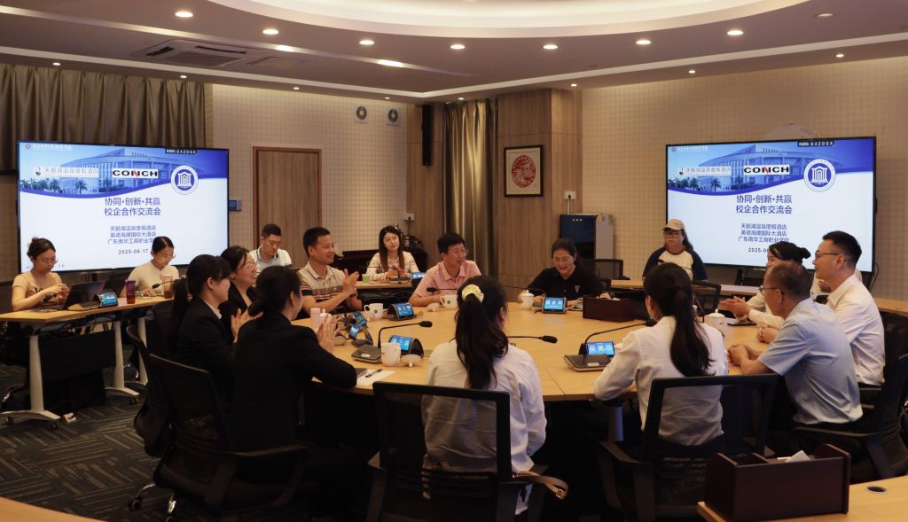 6月17日,英德海螺国际大酒店副总经理万雅丽、宝晶宫天鹅湖温泉酒店代表杨汝洪一行到校调研交流,进一步深化访企拓岗专项行动,促进校企合作提质增效。学校党委委员、招生与对外合作交流处处长黄玉良,文化旅游学院党总支书记夏建兵、副院长谭金凤接待并组织召开座谈会。