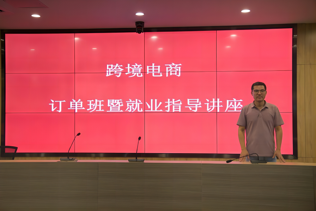 6月11日下午,外语外贸学院在清远校区图书馆多功能报告厅开展跨境电商订单班暨就业指导讲座,特邀华南电商产业科技(深圳)有限公司总经理黄兴朋担任主讲。外语外贸学院常务副院长杨鹏强教授、院长助理陈春慧副教授、关务与外贸服务专业负责人王云副教授、商务英语专业负责人余伟琼老师及外语外贸学院其他老师、辅导员和500多名学生参加此次讲座。