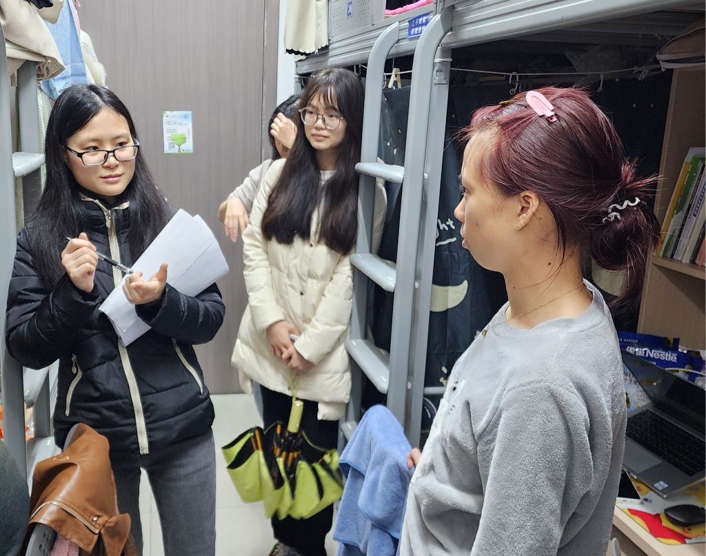 为深入了解学生开学状态,解决学生实际困难,2024年3月4日,外语外贸学院党总支部书记夏建兵带领学工团队在清远校区走访学生宿舍。