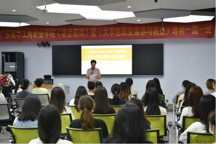 精彩职涯,扬帆今朝。2022年5月27日至5月29日,外语外贸学院在清远校区实训楼215和方形报告厅面向毕业生开展了“访企拓岗”暨“大学生职业素养和就业”活动。本次活动邀请到NLP国际执行师兼PTT国际高级讲师邹毅老师为同学们培训。外语外贸学院党总支书记夏建兵、外院各年级辅导员、财金学院杨力铖老师出席此次活动。