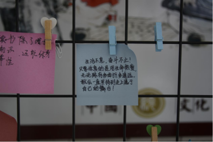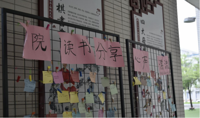 2022年5月25日-26日下午,在清远校区教学楼一楼架空层处举行了“读书分享,心声漂流”阅读分享活动。参与的同学在活动现场有序领取便签纸,在便签纸上写下自己平日积累的好句、好段或是心得感悟,最后将写完的便条展示在分享栏处。活动现场同学们热情高涨,不一会儿分享栏就已贴满便条,“抱怨身处黑暗,不如提灯前行”“生活不息,奋斗不止”……有的同学在活动现场相互交换便条,分享自己的阅读过程中的喜悦;有的同学以文会友,与其他同学共同讨论自己对分享字句的理解。这不单单只是一个简单的展示,更是一场心灵交换的盛宴。