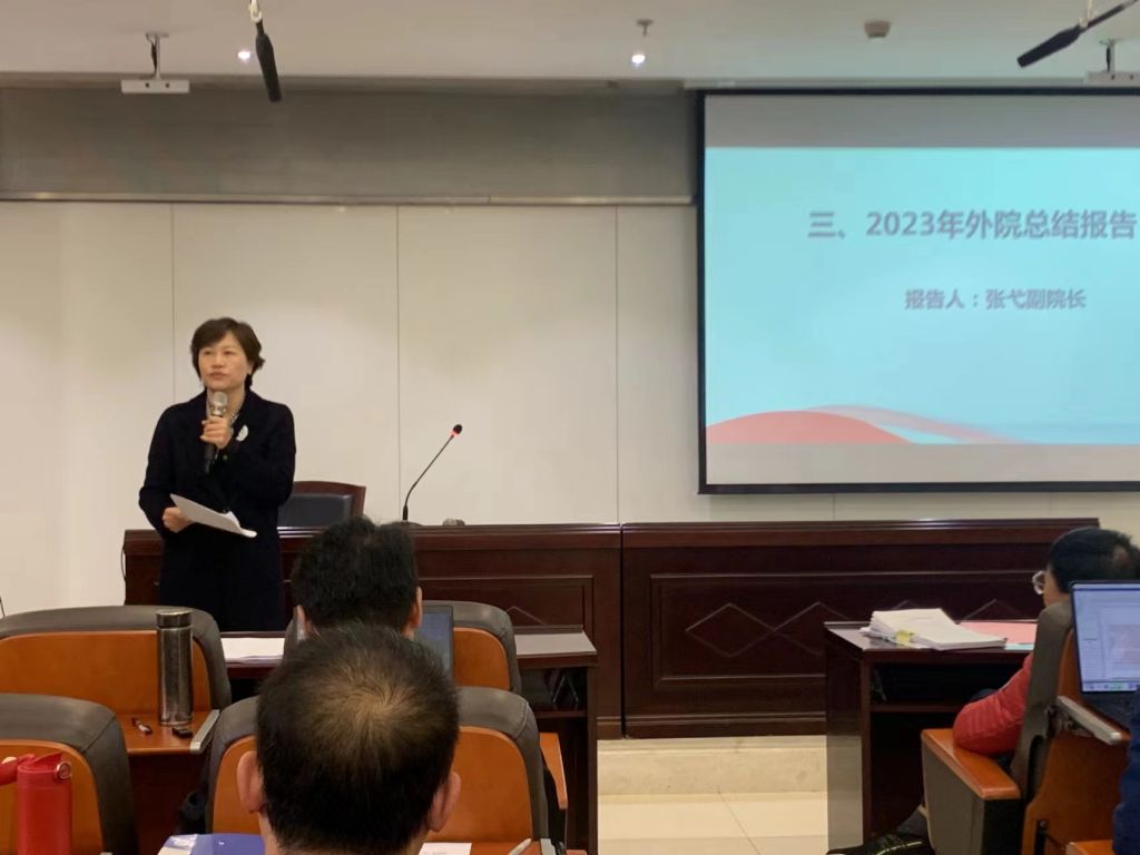 张弋副院长主要就学院党建、学生工作、教学工作三个方面作2023年学院总结报告。她从基础性工作、重点工作和创新性工作等角度,通过举实例、摆数据、做对比、亮举措、谈思路,既晒出年度成绩清单,也对发展的短板、弱项进行深入剖析,希望各位教师在做好常规工作的基础上进一步凝练优秀成果。