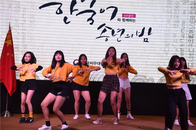 中山大学、广东外语外贸学院和深圳职业技术学院等17所华南地区院校参加了此次活动。我校的两个节目歌曲串烧《我的女孩》和舞蹈《NH GIRLS》作为压轴节目参加表演,充分展示了我校国实(中韩)和应韩两个专业学生韩语水平,节目获得了满场师生喝彩。