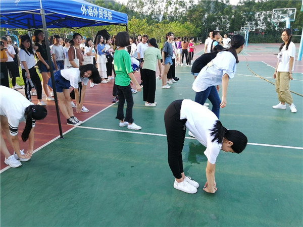 外院学生会主办本次拔河比赛,参赛队伍共有6队,其中商英专业有四支队伍,应英专业有两支队伍,由于专业的特殊性,其中清远校区的参赛队员大都是女生。