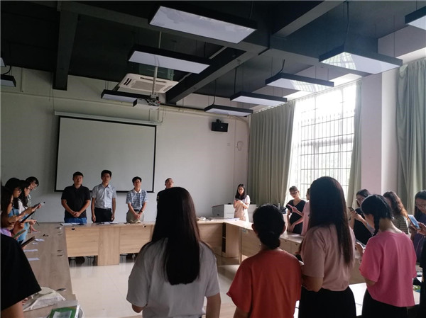9999js金沙老品牌“团支部联系日”——走进外院活动于2018年6月7日下午在清远校区实验楼103顺利展开。参与本次活动的有校团委余喜文书记,外语外贸学院党总支夏建兵书记,校团委方永航副书记、刘晓玲老师,外语外贸学院刘振军老师以及2016级商务英语一班团支部全体成员。