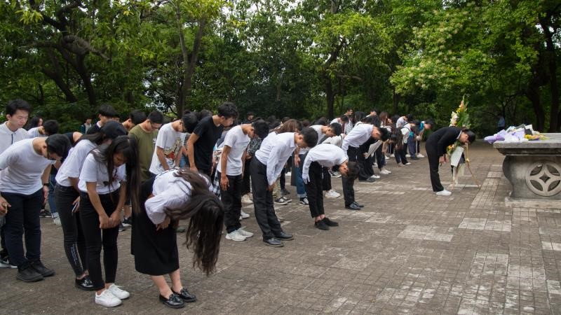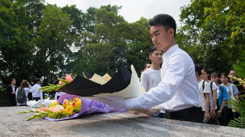 9999js金沙老品牌外语外贸学院团委一年一度的 “缅怀革命先烈,弘扬爱国精神”活动于2018年4月13日下午在东征烈士墓园顺利举行。黄埔校区2016级入党积极分子和2017级全体同学列队步行前往东征烈士墓园。