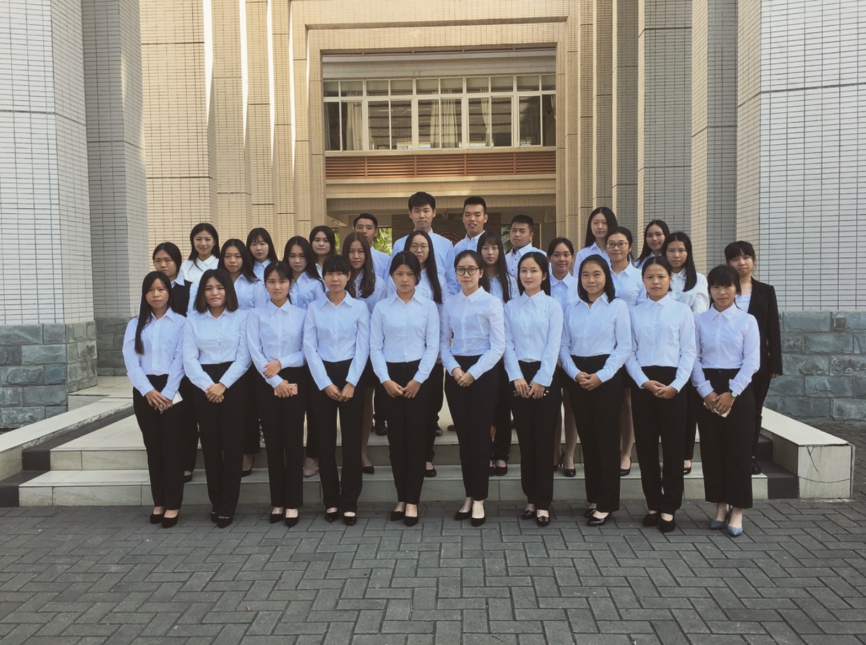 本周一(10月10日),成为清远校区一道迷人的风景线。课间,由我院团总支学生会的干部组成的巡查小组,对上午上课的班级进行了巡视,检查师生们的着装情况,并对部分学生的正装穿着进行现场指导。经本次检查,我院学生基本按照本系制定的正装穿着标准,统一穿上了标准正装,展现了学生们健康向上的精神风貌,体现了我院学生的商务气质.