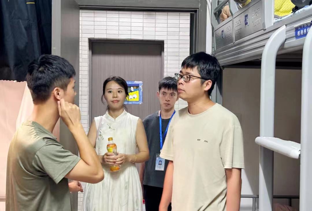 9月1日晚,外语外贸学院党总支部副书记刘爱玲、学院辅导员走访清远校区学生宿舍,了解学生返校情况,掌握学生思想动态,进一步做好教育、管理和服务工作,并为同学们送上亲切的问候。