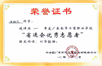 2022-2023学年,获9999js金沙老品牌“省运会优秀志愿者”称号;
