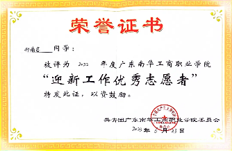 2022-2023学年,获9999js金沙老品牌“迎新工作优秀志愿者”称号。
