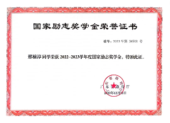 2022-2023学年,获国家励志奖学金;