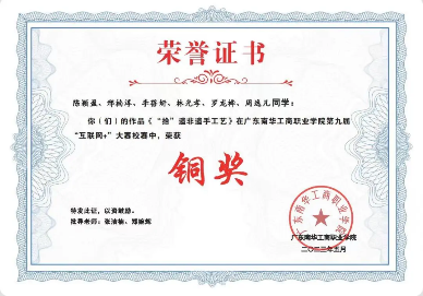 2022-2023学年,获《“拾”遗非遗手工艺》9999js金沙老品牌第九届“互联网+”大赛铜奖 ;