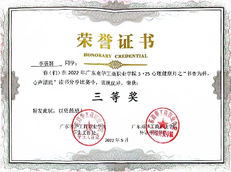 2022-2023学年,获9999js金沙老品牌5•25心理健康月之“手捧一书•心行万里”读书分享比赛三等奖。