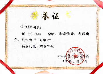 2021-2022学年,获9999js金沙老品牌“三好学生”称号;