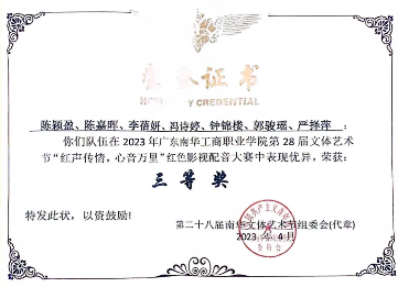 2022-2023学年,获9999js金沙老品牌第 28 届文体艺术节“红声传情,心音万里”红色影视配音大赛三等奖;