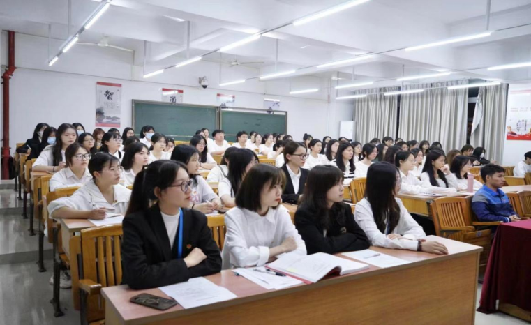 最后,汇总二十大报告中关于青年的论述,结合学生专业特色。赵老师寄语现场同学,怀揣爱国之心,砥砺报国之志,继承与发扬老一辈教育学家胸怀祖国、服务人民、热爱教育的优秀品质,肩负起时代赋予青年的责任,为实现中华民族伟大复兴的中国梦而奋斗,绽放绚丽光彩。