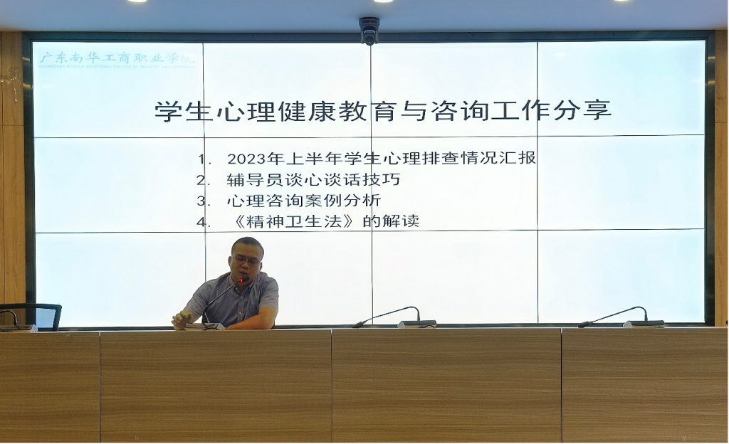 9月18日上午,党委学生工作部在清远校区图书馆一楼报告厅举办第七期学生政工干部“天鹅湖学习论坛”。此次论坛主题为“学生心理健康教育与咨询工作分享”,由学校心理辅导中心主讲。学校党委委员、学生工作部(处)长余喜文出席活动,活动由学生工作处蔡文军主管主持。