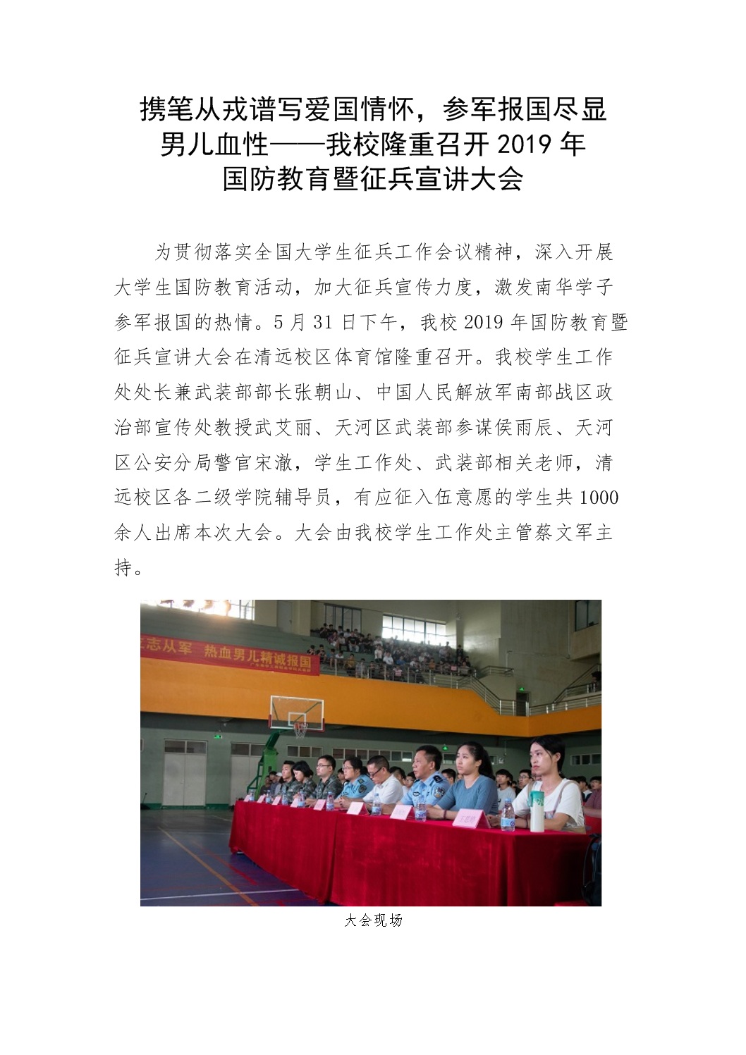 携笔从戎谱写爱国情怀,参军报国尽显男儿血性——我校隆重召开2019年国防教育暨征兵宣讲大会
