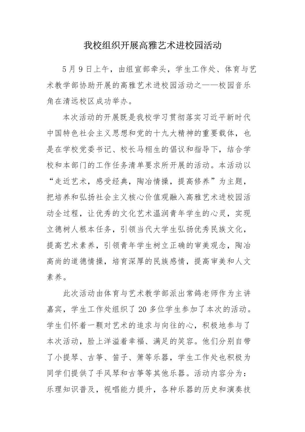 我校组织开展高雅艺术进校园活动