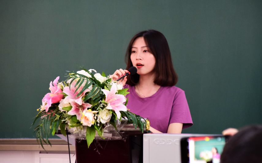仪式第三项,财务金融学院学生代表刘怡梦发言。刘怡梦同学表示:作为入党发展对象和学生干部应该模范带头认真学习马克思主义,做到真学、真懂、真信、真用马克思主义。