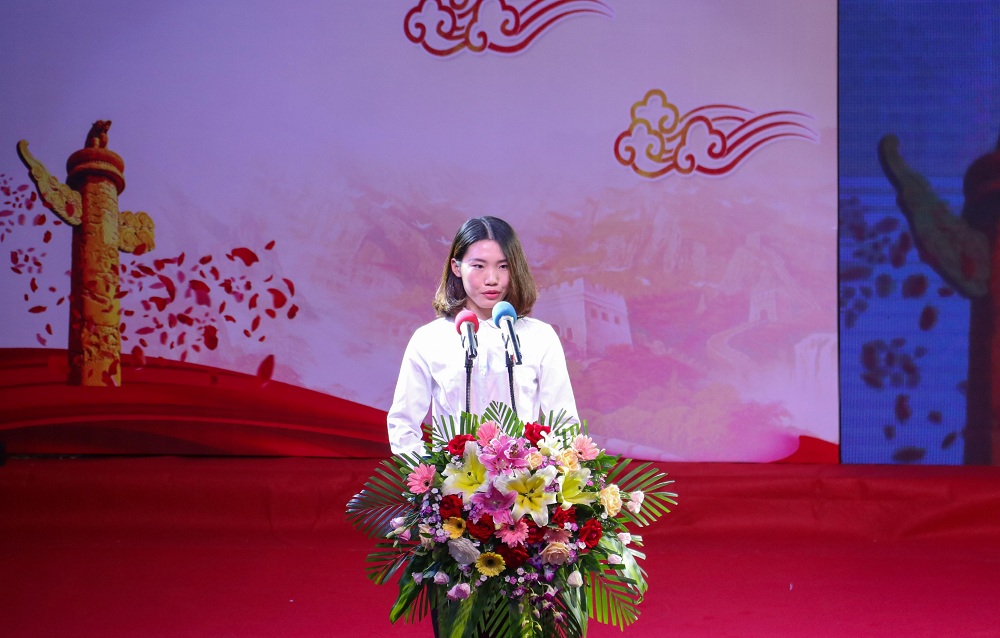 发言代表积极分享其获奖的喜悦和取得优异成绩的经验,衷心感谢学校领导、老师的栽培,感谢同学的支持帮助,热情呼吁同学们与其一起怀揣梦想、勇于担当、争做新时代社会主义青年好榜样。
