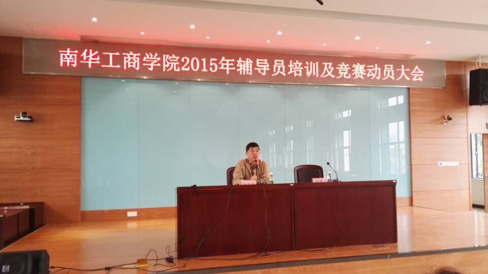 1月6日至1月8日,我校在天河校区3号楼4楼报告厅举行了2015年辅导员职业技能培训暨竞赛活动。内容包括:职业技能培训、交流、竞赛和总结表彰。学院党委张皖明副书记,学院副院长郭记中教授,学院院长助理兼黄埔综合办主任李中原教授,学生处张朝山处长,学生党总支常立威书记,学院团委余喜文书记,思政部余展洪教授等出席了活动各项重要环节;各二级学院、系党委副书记和副主任,学生处、院团委相关人员及全体辅导员等参加了培训暨竞赛活动全过程。