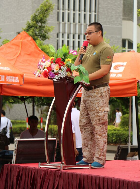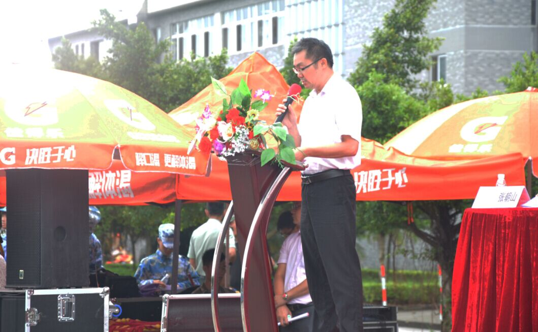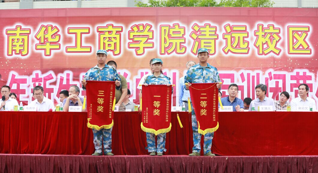 9月21日上午8∶30,南华工商学院2015年新生开学典礼暨军训闭营仪式在清远校区足球场上隆重举行。学院党委李河川书记、学院易江院长、承训单位黄埔军训拓展中心办公室张永鑫主任、学院党委张皖明副书记、学院郭记中副院长、学院王满元副院长,院长助理、清远校区综合办韦秀华主任、各二级学院(系)和职能部门领导、清远校区全体辅导员及2015级学生参加了本次典礼。开学典礼暨军训闭营仪式由学生处处长、武装部部长张朝山主持。