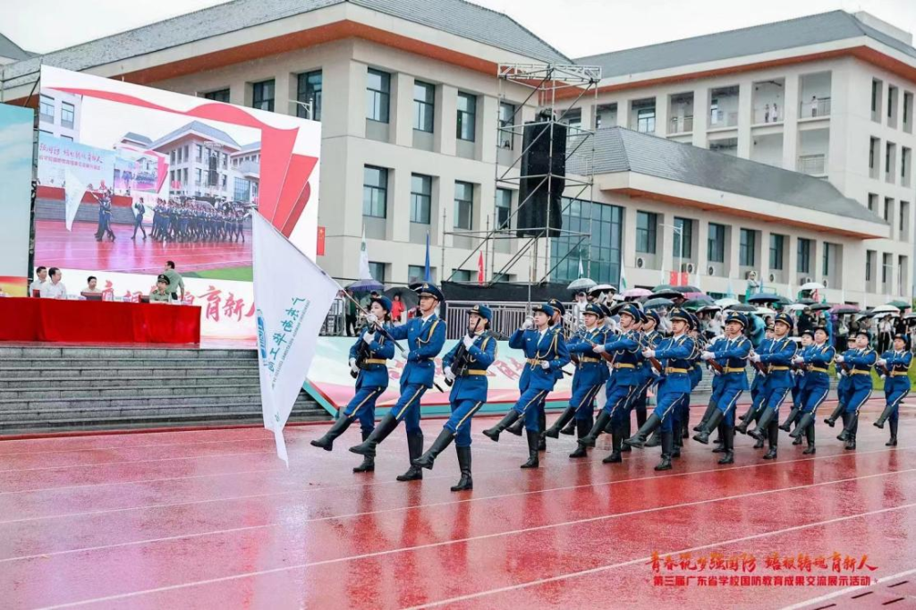 本届全省学校国防教育成果交流展示活动由广东省教育厅、广东省军区战备建设局、广东省军区动员局、共青团广东省委员会联合举办的“青春筑梦强国防 培根铸魂育新人 ”第三届全省学校国防教育成果交流展示活动在广东科贸职业学院隆重举行。来自省内本科院校、高职院校、高中学校共170余所,师生代表7000余人参加本次活动。我校国旗护卫队奋勇争先,以标准规范的动作、昂扬向上的精神风貌,在64所高职院校交流展示比赛中脱颖而出,成绩排名14并荣获全省高职院校组国旗护卫队比赛二等奖。