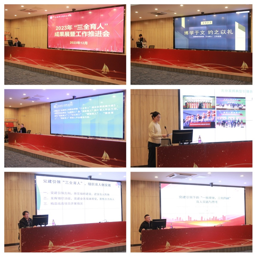 会上,组织宣传部、人事处、学生工作处、校团委作“三全育人”工作进展情况汇报,相关二级学院作“三全育人”案例分享及精品培育项目开展情况汇报。