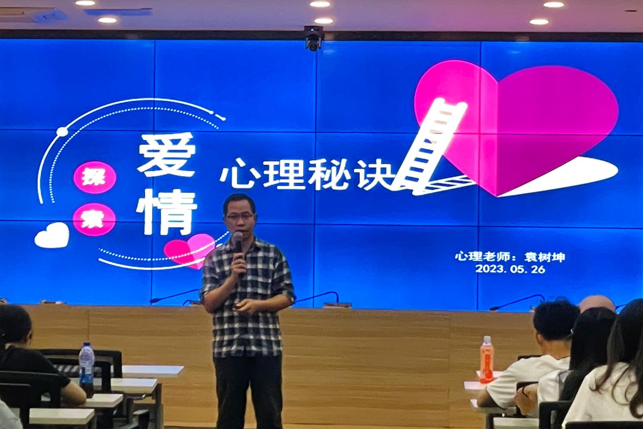 5月26日晚,为更好地解答学生对于情感、爱情的困惑,树立正确的爱情价值观,学生工作处邀请了资深国家心理咨询师袁树坤老师在清远校区图书馆一楼报告厅开展了题为《探索爱情的心理秘诀》的心理健康讲座。
