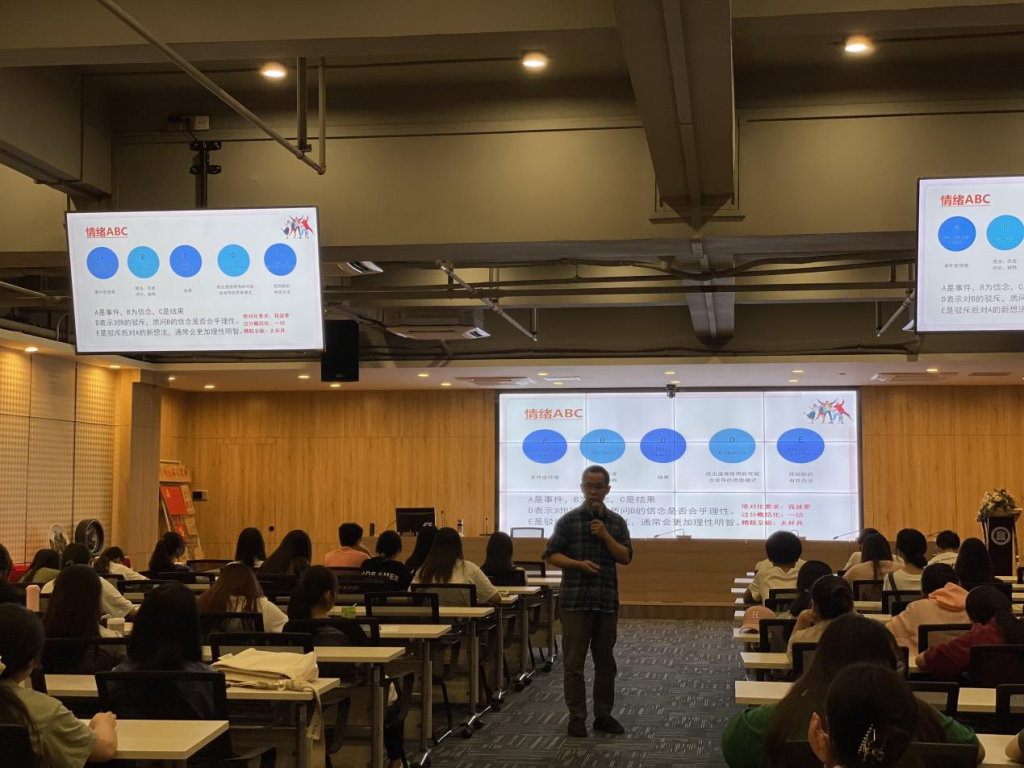 5月25日是全国大学生心理健康日。为加强学生心理健康知识的普及,培养学生积极向上的健康心态,学会正确调整情绪,提高情绪调节的能力,成为管理情绪的主人,学生工作处邀请了国家心理咨询师袁树坤老师于5月25日晚上7点在清远校区图书馆一楼报告厅开展了题为《做情绪的主人》的心理健康讲座。学生工作处老师、各学院学生100多人参加了讲座。