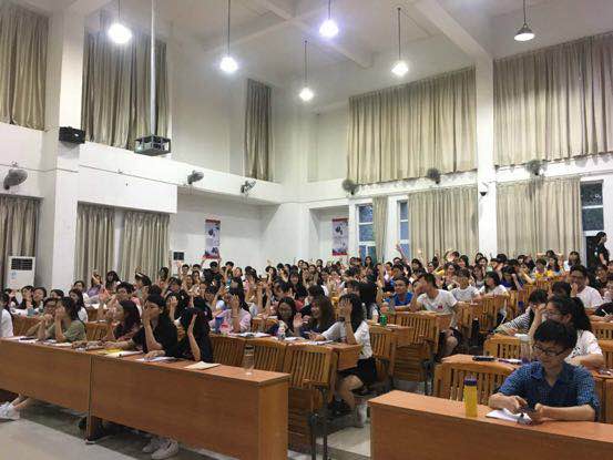 谭红老师先用生动的语言阐释催眠是什么,解答了大家关于催眠的种种疑问和误解。接着,老师跟同学们介绍了“冰山理论”,让大家知道梦是潜意识的结界,而催眠时意识和潜意识都会打开。同学们渐渐被谭红老师带入学习的状态,最后老师邀请了几位同学上台做催眠体验,并且跟全体同学分享了放松体验,让同学们更加深入地了解关于催眠的理解。